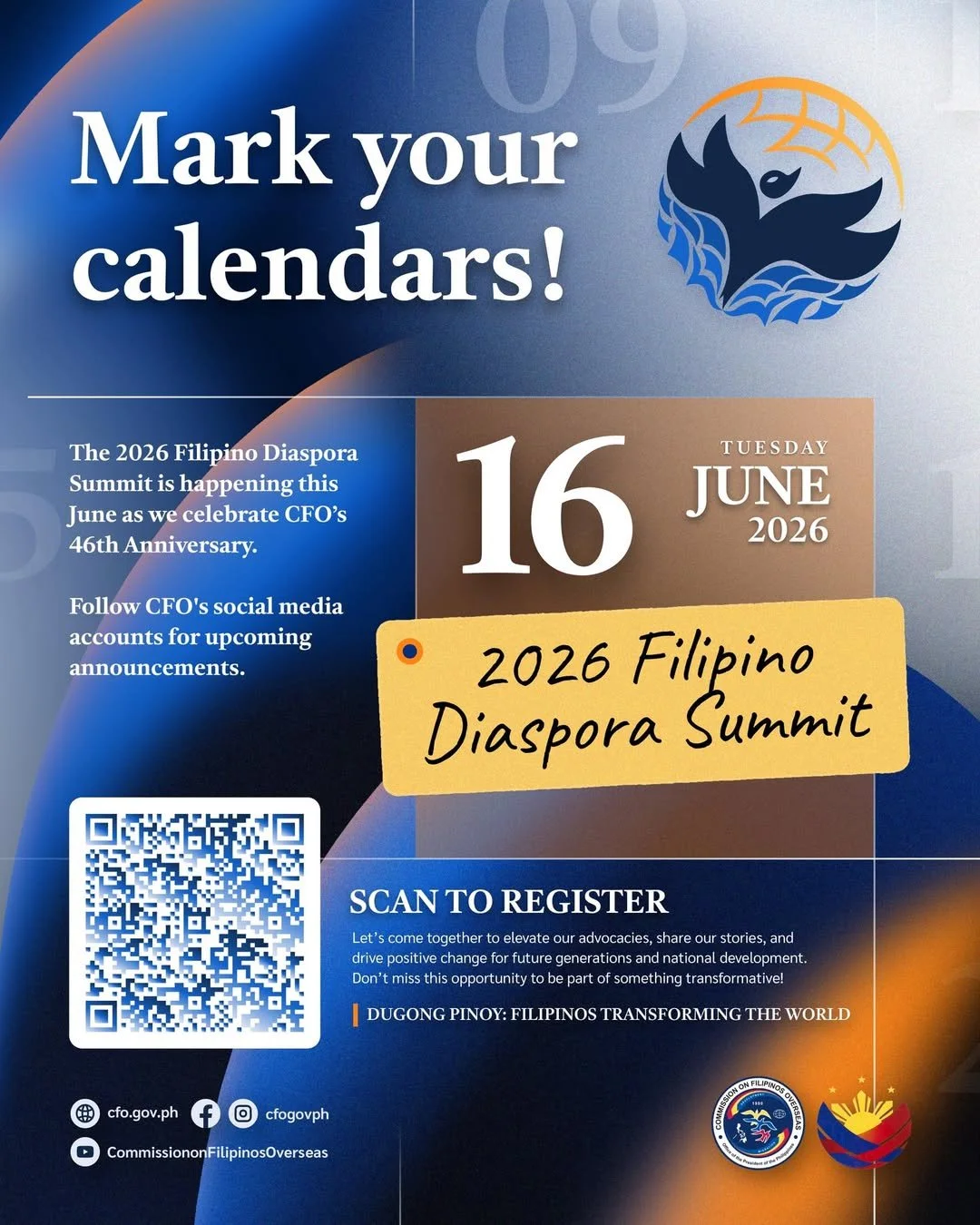 /The 2026 Filipino Diaspora Summit is happening this June as we celebrate CFO’s 46th Anniversary. Follow CFO's social media accounts for upcoming announcements.