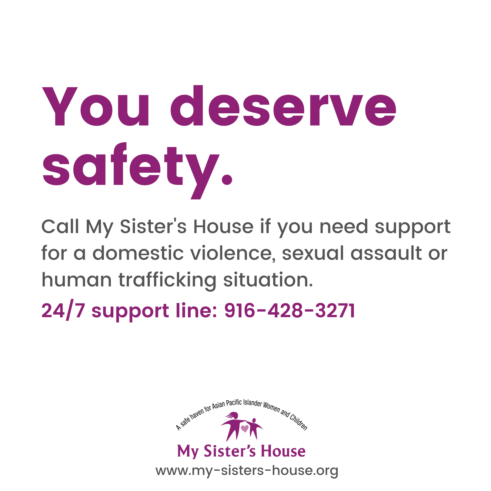 COVID-19 has left many domestic violence survivors isolated without any way of learning that help is available to them. My Sister's House has been especially concerned about the impact Covid-19 has had on our Asian/Pacific Islander families. Our 24/7 multilingual crisis line is 916-428-3271.