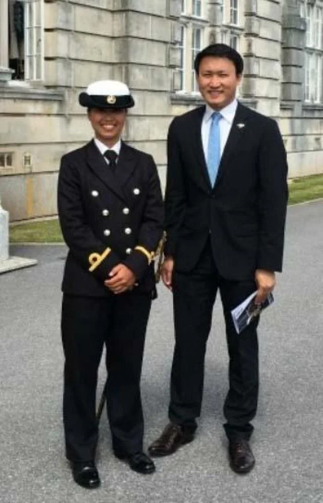/Philippine Navy Ensign Maycee Angga with Consul Rommel Romato in Dartmouth, England. (Source: GMA News)