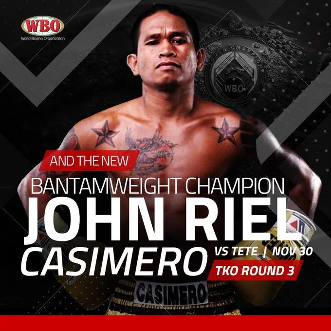 /New WBO Bantamweight Champion John Riel Casimiro (Source; Twitter)