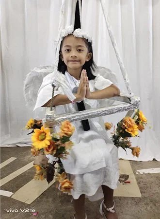 Macy Campañano appears as the lead angel in the Easter Salubong, the dawn ceremony that dramatizes the meeting of the Risen Christ and the sorrowing Virgin Mary. (Photo courtesy of Merlita Usita Campañano)