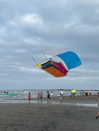 At about past 4 p.m., elaborate homemade kites began to appear on the beach, making tentative attempts to stay up in the air. First, there was the jeepney kite—colorful and beautifully upright once it was in the air. Some people applauded. Then the giant fish kite went up, followed by the crab kite. They were all beautiful and sailed right past the appreciative audience, who whooped and applauded, and the kids jumped up and down as they pointed up at them.