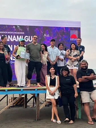 The festival began with the dance troupe from the State University of Northern Negros (SUNN), opening with a very well-executed modern number on the sandy beach! Festival judges and local officials were introduced, walking to the stage—some barefoot, others comfortably in their ready-for-wet Crocs—with filmmakers and their crew joining them for photo, video, and drone ops. Lupang Hinirang blared on screen and throughout the now-dusky beach, with the beautiful silhouette of the horizon etched by eyebrow-stroke clouds.
