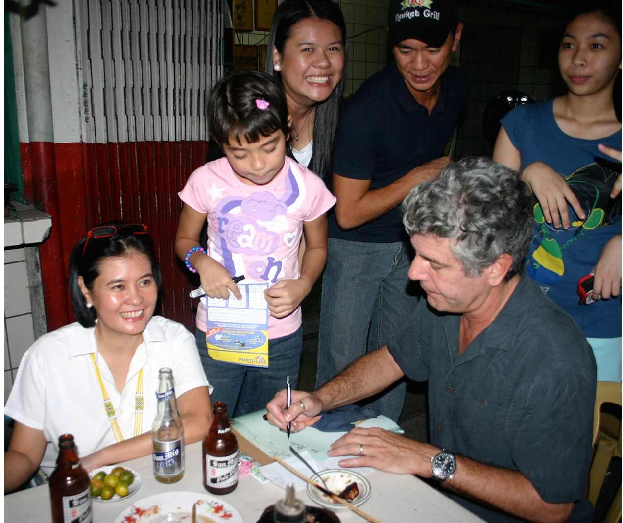 Obliging his fans with photo ops and book signing at Aling Lucing Sisig, Angeles City, October 2008. (Photo courtesy of Claude Tayag)