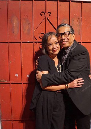 Allan Samson Manalo and Joyce Juan Manalo poses in front of the original door of Bindlestiff Studio at its 30th anniversary celebration on December 7, 2019. (Photo by Allan Samson Manalo)