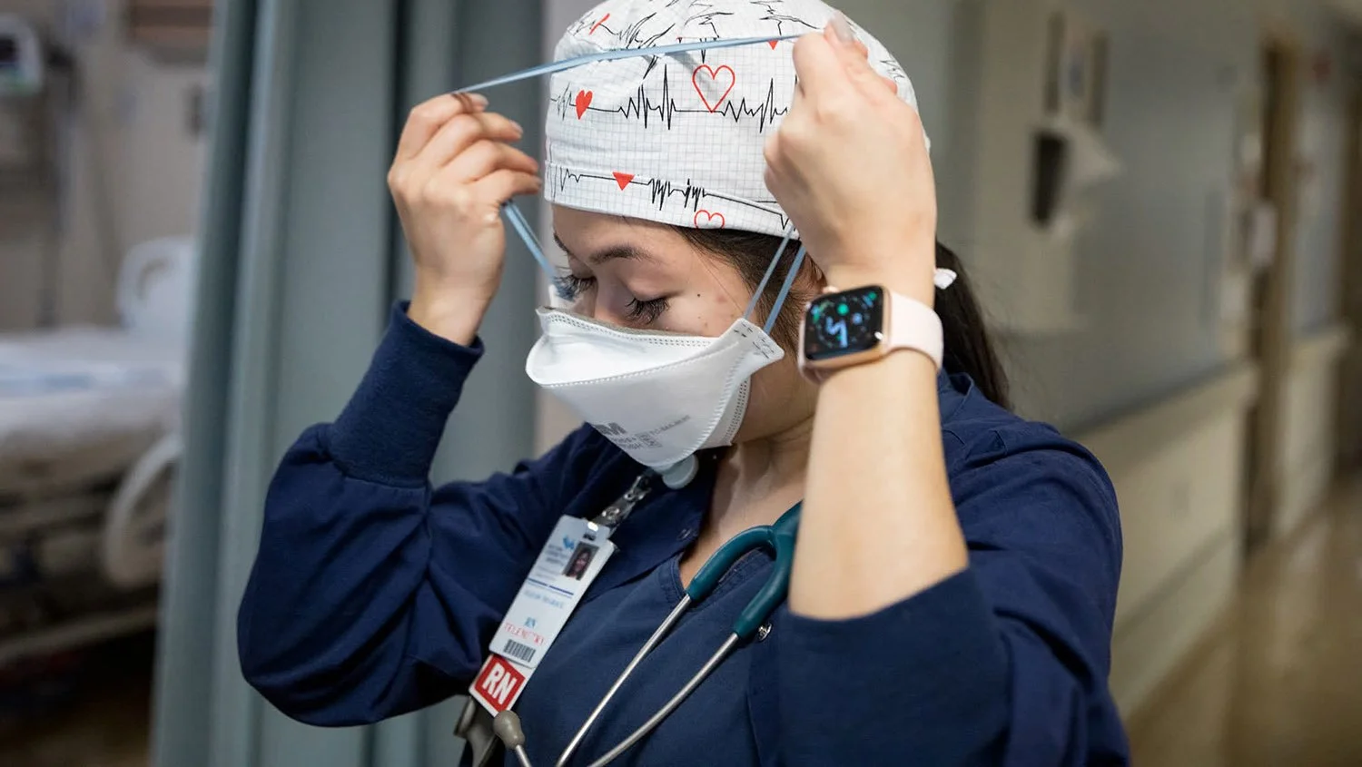 Mona Rivera, age unknown, nurse at Kaiser LA Medical Center, California, on December 14, the same day her fellow nurses were rallying against what they claim were violations inside the hospital that led to Rivera’s exposure.