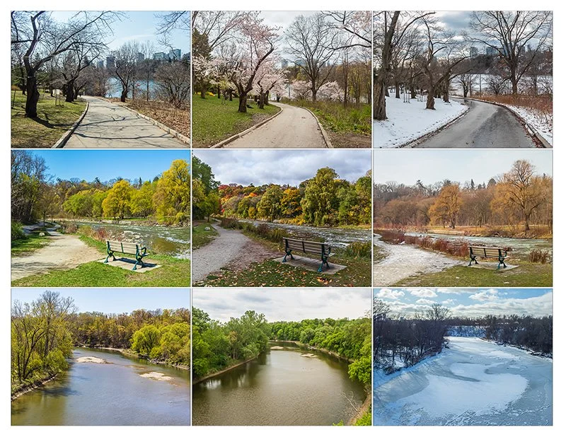Bottom row: Humber River in spring, summer, and mid-winter. (Photos by Odette Foronda)