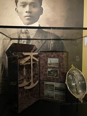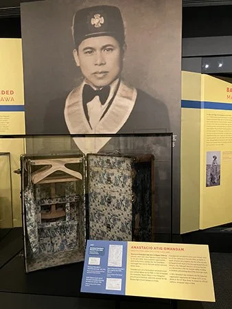 It shows the lives of Filipino migrants who lived in Stockton, California from the 1910s to 1970s. Most of the items in the exhibit belong to the Filipino Agricultural Workers Collection - which sprung from the discovery of 26 trunks, suitcases, and toolboxes made by Antonio Somera in 2005 in the basement of the Daguhoy Lodge, owned and operated by the Legionarios del Trabajo, a Filipino American fraternal society modeled after Masonic lodges. These trunks were brought to Dr. Dawn Mabalon (who later passed away in 2018) and Dillon Delvo, founders of Little Manila Rising. They made it their goal to preserve the trunks and find a home in the Smithsonian, working with Center for Folklife and Cultural Heritage Curator, Dr. Sojin Kim, who later introduced them to Dr. Sam Vong, Curator of Asian Pacific American History. Vong worked on the collection of the one trunk and several items for the museum’s Archives Center.