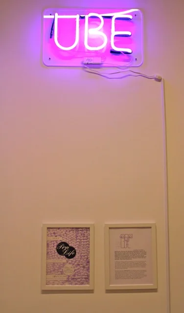 "UBE” is the work of O.M. France Viana, a FilAm artist who uses Filipino foods as her subject and medium. "The lowly ube has such a precious, deep, distinctive hue; it is practically our national color and deserves to be celebrated, to have its name in lights, like a rock star." A second work, "Drool: Ube" a photograph veiled with tulle fabric embroidered with crosses (a symbol on Prince's Controversy album cover) hypes up sensuality, making a lick of ube ice cream seem almost lascivious. Drooling purple is not only mandatory when it comes to Prince, it is also a story with mythic roots, France reveals, "Hercules' dog is credited with discovering the color purple when it bit into a murex shell on a beach and Hercules noted the peculiar color dripping from its mouth."