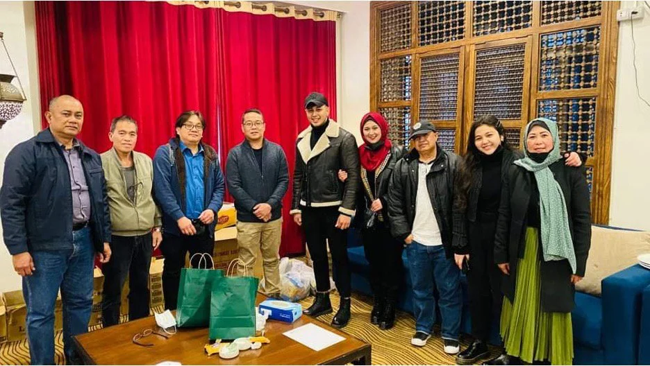 /Embassy personnel pose for a picture with some Filipina families in Gaza prior to the actual conduct of the Consular Outreach on March 21-22, 2022 at Al Mashtal Hotel, Gaza (Photo courtesy of the Philippine Embassy in Jordan)
