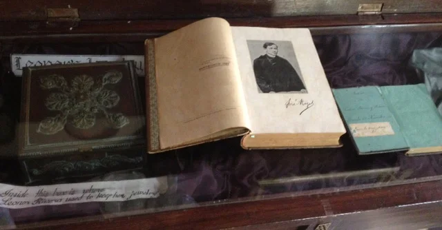 Leonor Rivera's jewelry box where she kept mementos, Rizal's "Noli Me Tangere" signed and a gift to Leonor. (Photos by Elizabeth Ann Quirino with thanks to the family of the late Dr. Carlos R. Kipping Jr., Camiling, Tarlac)