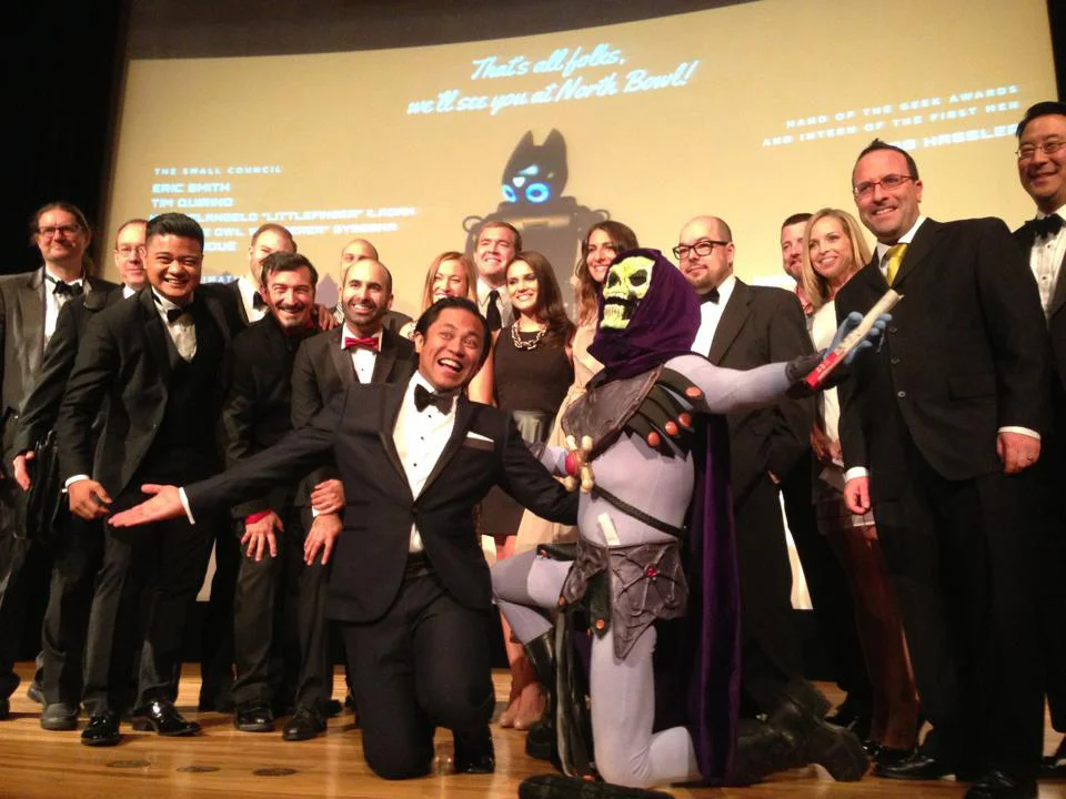 Mikey Ilagan, Geekadelphia editor-in-chief, with producers of the annual Philadelphia Geek Awards recognize awardees who make the tech scene better. (Photo courtesy of Mikey Ilagan).