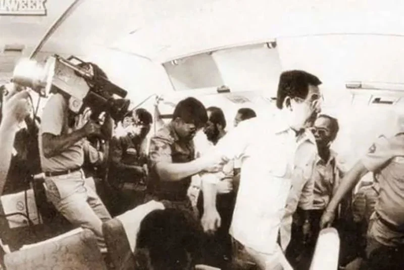 /Ninoy Aquino, being led away by the Philippine military on his arrival in Manila, August 21, 1983 (Source: The Kahimyang Project)