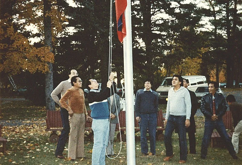 Ninoy Aquino, along with Upsilonian brods raising the Philippine Flag in Boston, in late 1981 (Sent by Victoria Villa on behalf of Victorino Villa '59)