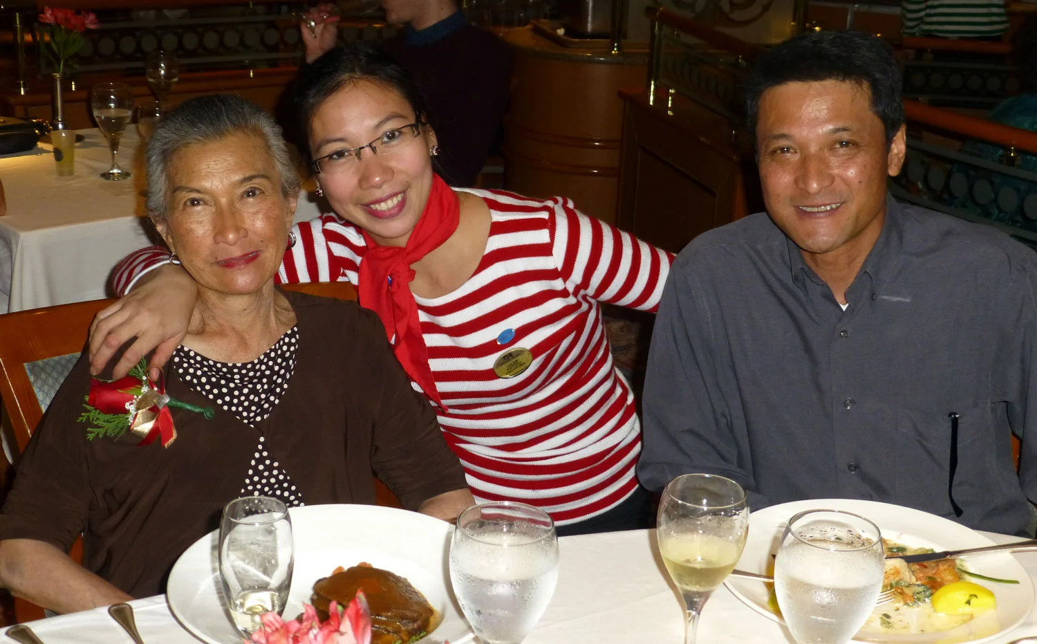 Marvin Prado (on the left) who comes from Cavite is a very talented person. He too has been sailing for several years and he made my Mom's birthday dinner very special with a serenade. He later showcased his singing talent during the crew's talent night and got an offer to be part of the cast of entertainers. (Photo by Albert Romero)