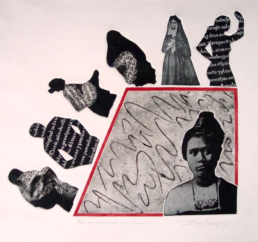 Saan Ka Nanggaling Saan Ka Darating, (1979). Photoengraving, etching and collagraphy, 35 cm. x 37.5cm., precursor of her work as Filipina feminist. (Photo is courtesy of Imelda Cajipe Endaya)