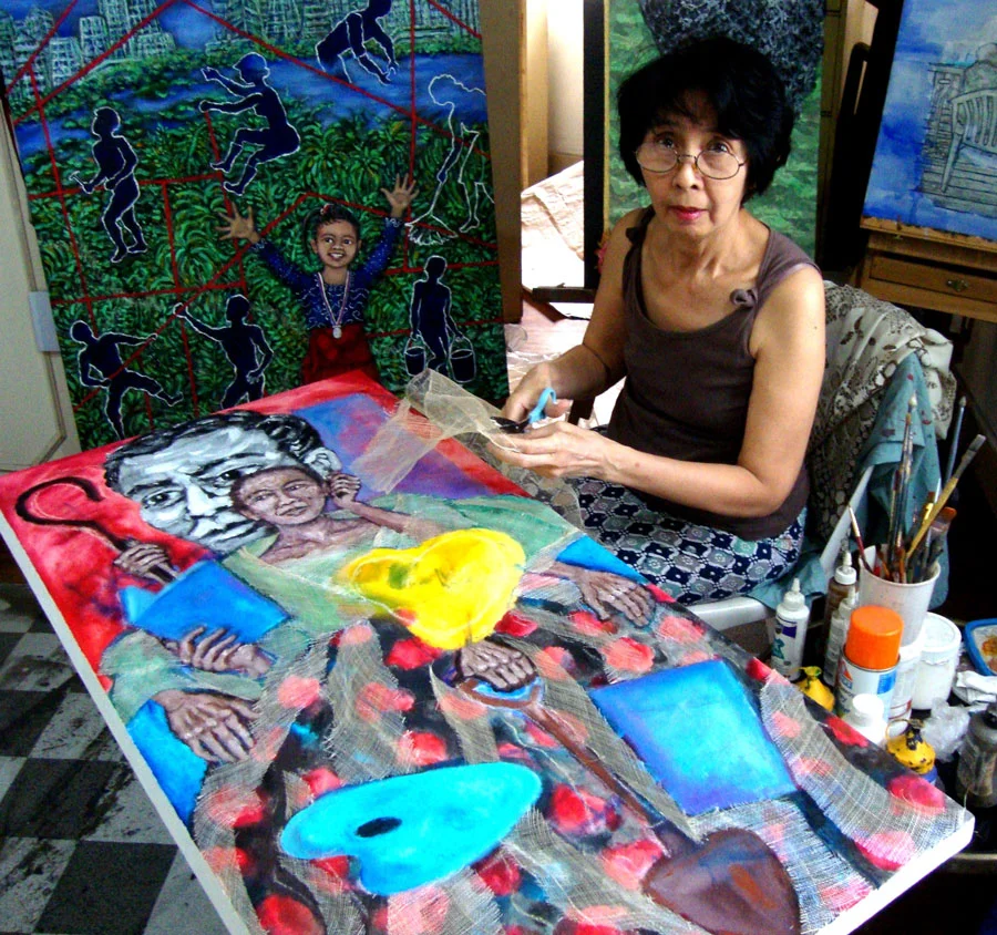 Imelda Cajipe Endaya sees living as a calling consisting of several roles. For her it is about being a daughter, wife, mother, grandmother, citizen and artist. She is joyful on every level. “I have learned to live cheerfully and without heartaches, making me healthier,” she expresses. “I continue to dream of doing more and make paintings better than the previous once I have finished.”