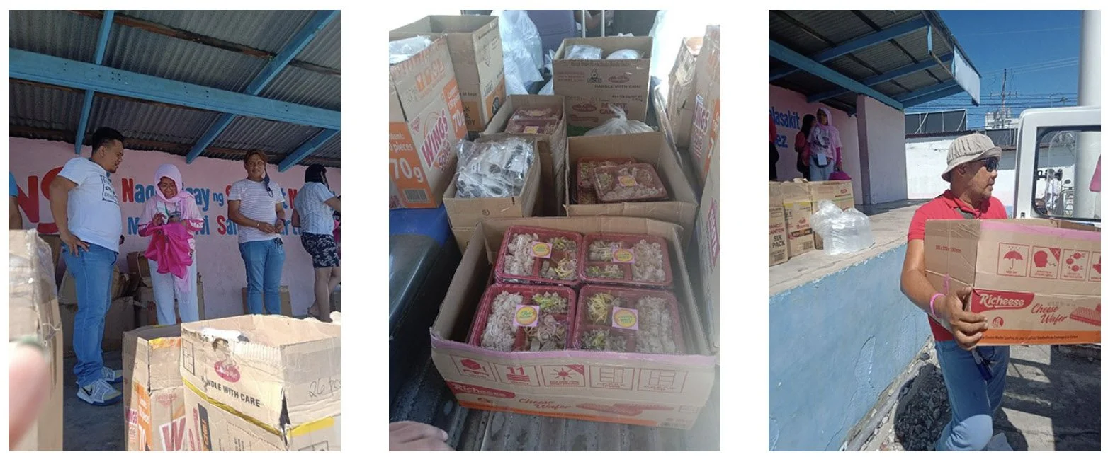 Neneng then heads to a parking lot midtown where Food Committee members unload in systematic fashion the food packs and bottled water for the rally front-liners. At 3:00 p.m., tricycle drivers seeing the youth carrying the fancy food packs, stop and ask for some. Neneng shares with the first lucky dozen, and then another.