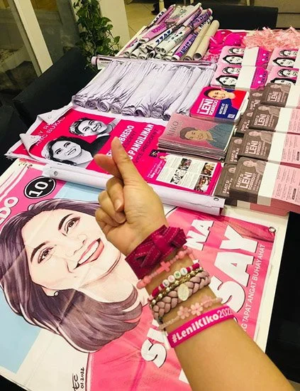 Then, cue MUSIC: “Kay Leni Tayo! “ “Narito naaaa (She’s here)!” says the duo! “Handa na ba kayo (Are you ready)?” The music gets louder and the crowd surges even closer to the stage. The youth wildly sing along to the jingle, “ Kay Leni Tayo! Leni Robredo, Oo!” all the pink banners are up and keeping to the beat, while the band goes wild. Then it suddenly stops. It is the rock star herself, VP Leni Robredo.