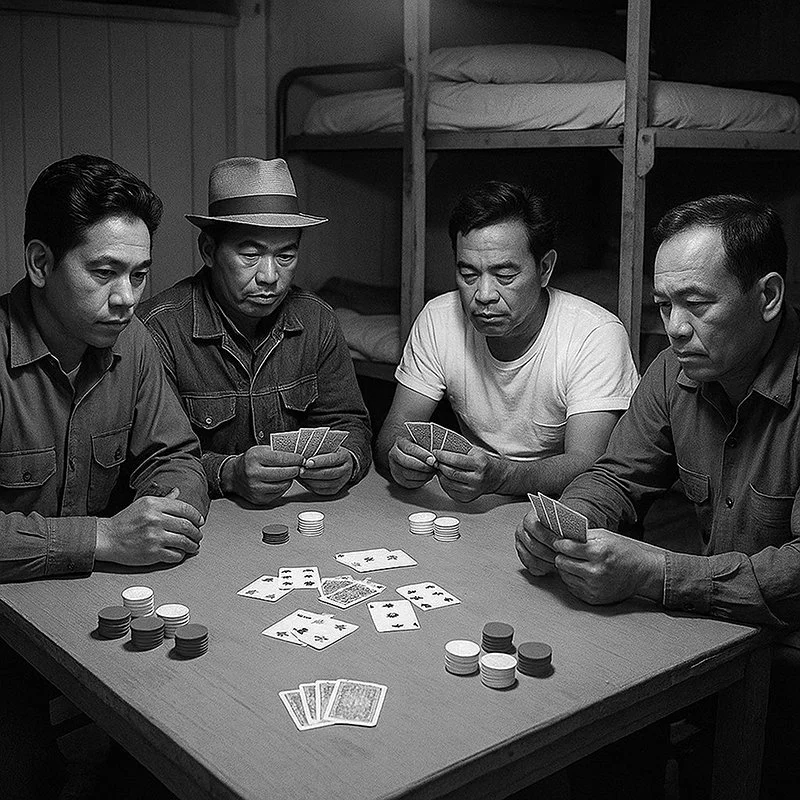 Most nights, there was poker. At first, I sat and watched. The manongs were casual with their coins but serious about the game. I noticed how a man leaned back when he had nothing, forward when his hand was good. I paid attention to how they traded cards — two meant chasing something, one meant they probably had it.